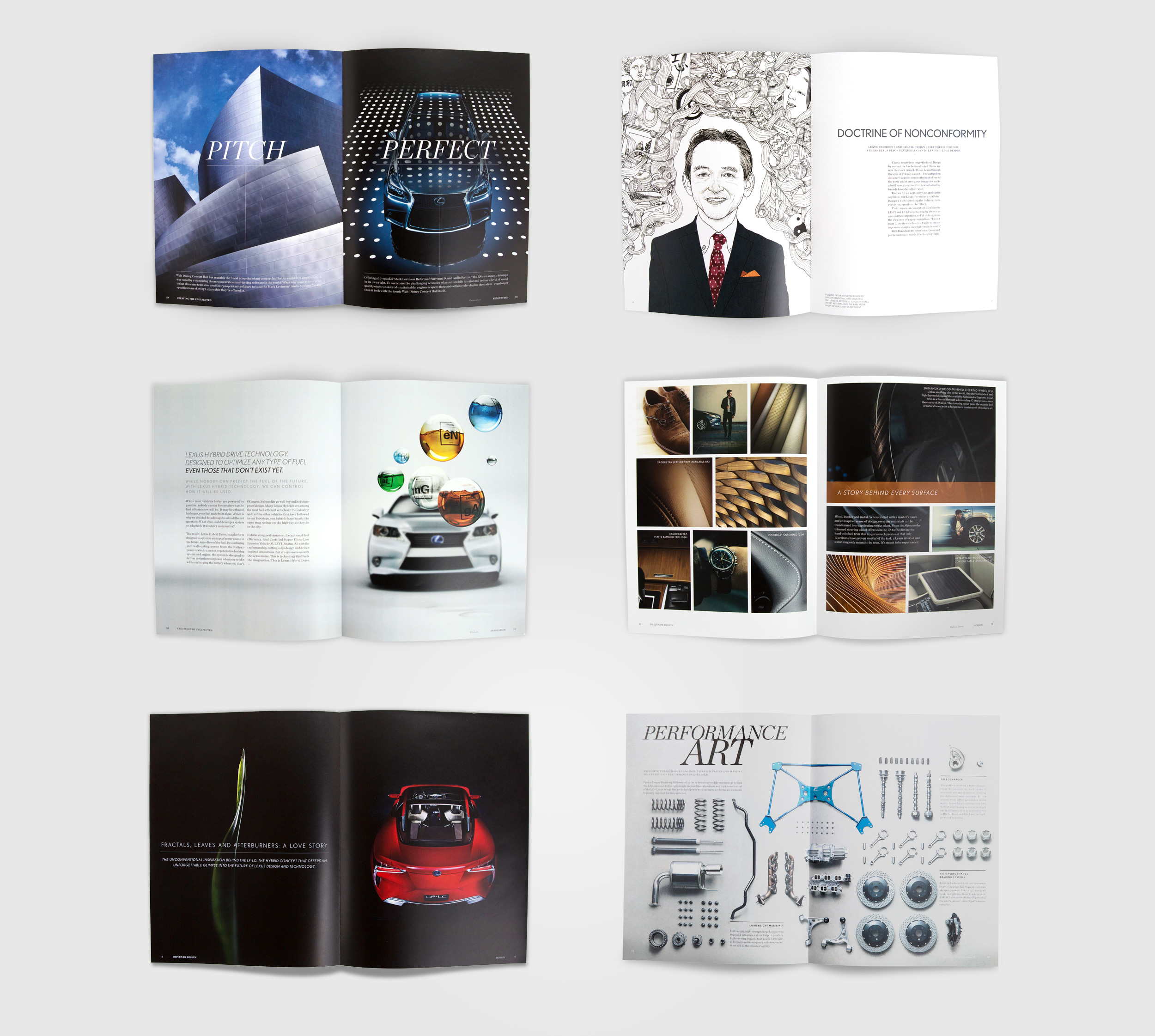 The storytelling was organized through the lenses of performance, innovation and design. Stories ranged from a comprehensive dive into the unique history of the F Performance division to a provocative look at how a single leaf inspired one of the world’s most celebrated concept vehicles.